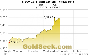 Cena zlata se z pátečních necelých 4 980 dolarů za trojskou unci posunula téměř k hranici 5 600 USD. Spotová cena se podle Reuters pohybovala kolem 5 512 USD a během noci na čtvrtek 29. 1. se dotkla zhruba 5 596 USD.
