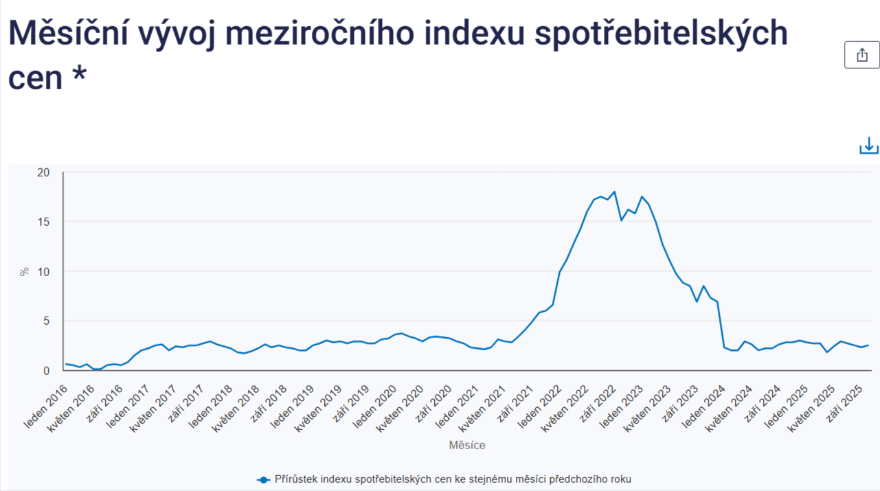 Říjen 2025: inflace stále se drží v tolerančním pásmu ČNB.